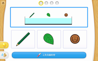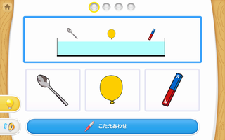 いろいろなものを水に入れるとどうなるか、実験動画を通して学び、答える問題です。